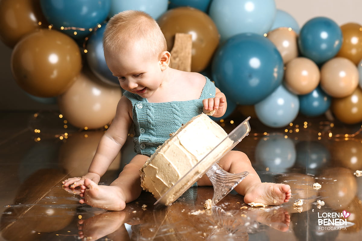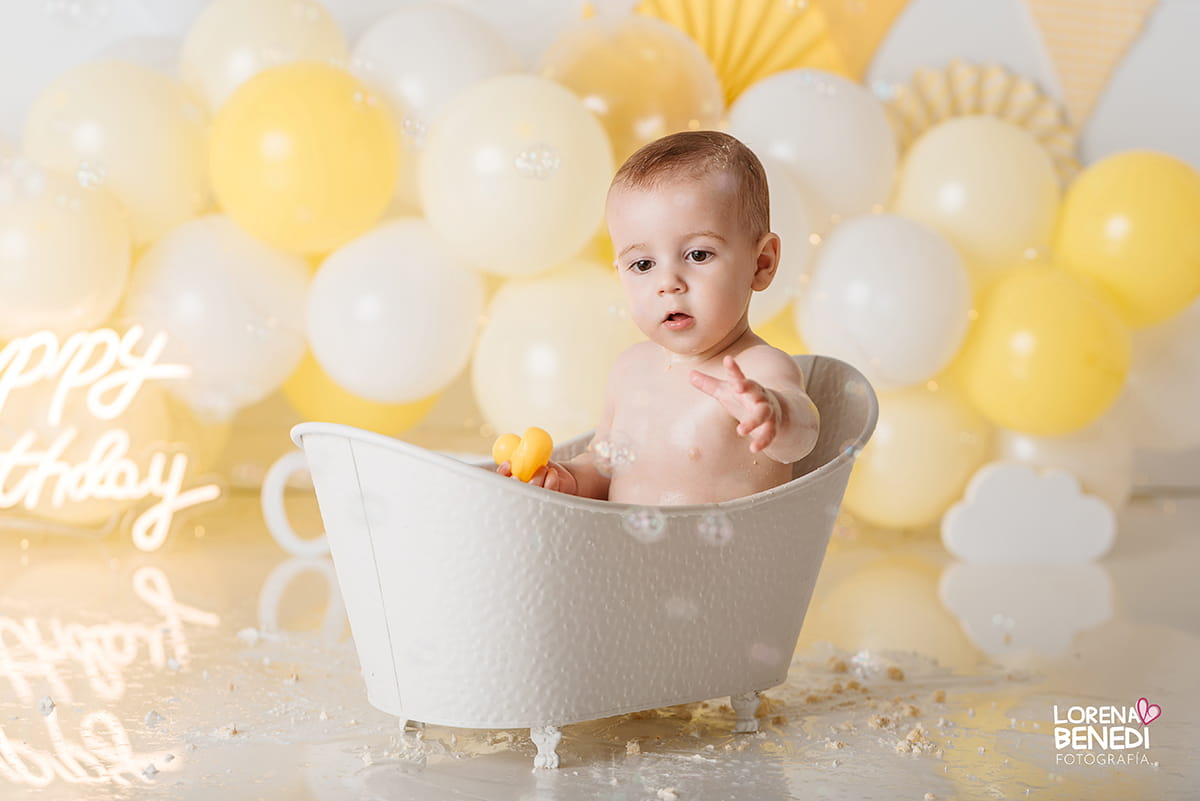 Una sesión súper divertida donde el peque puede experimentar con las texturas de la tarta, comer, mancharse mucho… y después terminar chapoteando en la bañerita con agua caliente.